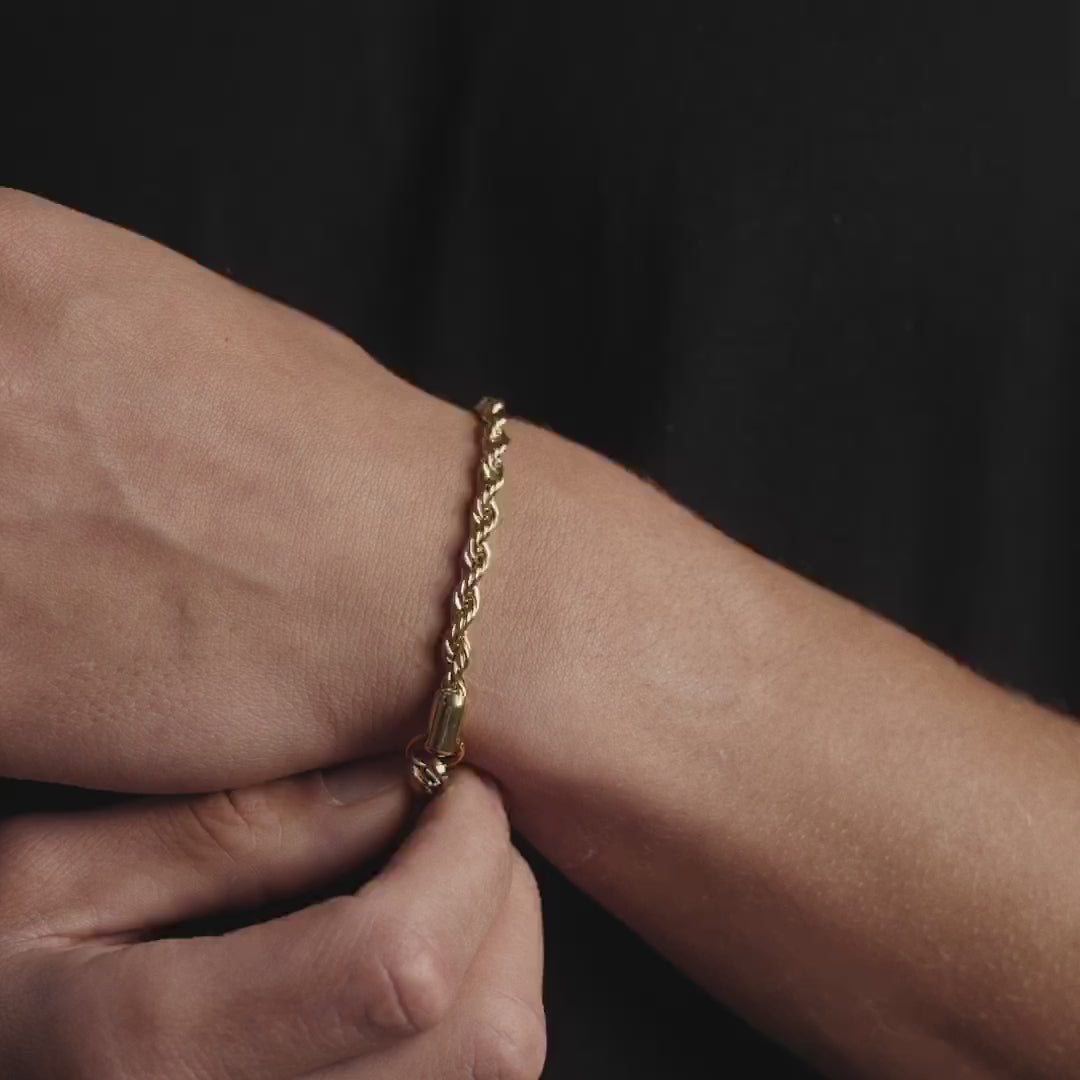 Handcrafted with diamond-cut links that catch the light from every angle, this 18K gold rope bracelet is the kind of piece you’ll never want to take off. Wear it solo for a clean finish, or stack it with other pieces for added depth. Either way, it never looks out of place. Designed to sit naturally on your wrist, it’s secured with our snap-proof lobster clasp and finished with scratch-resistant protection.